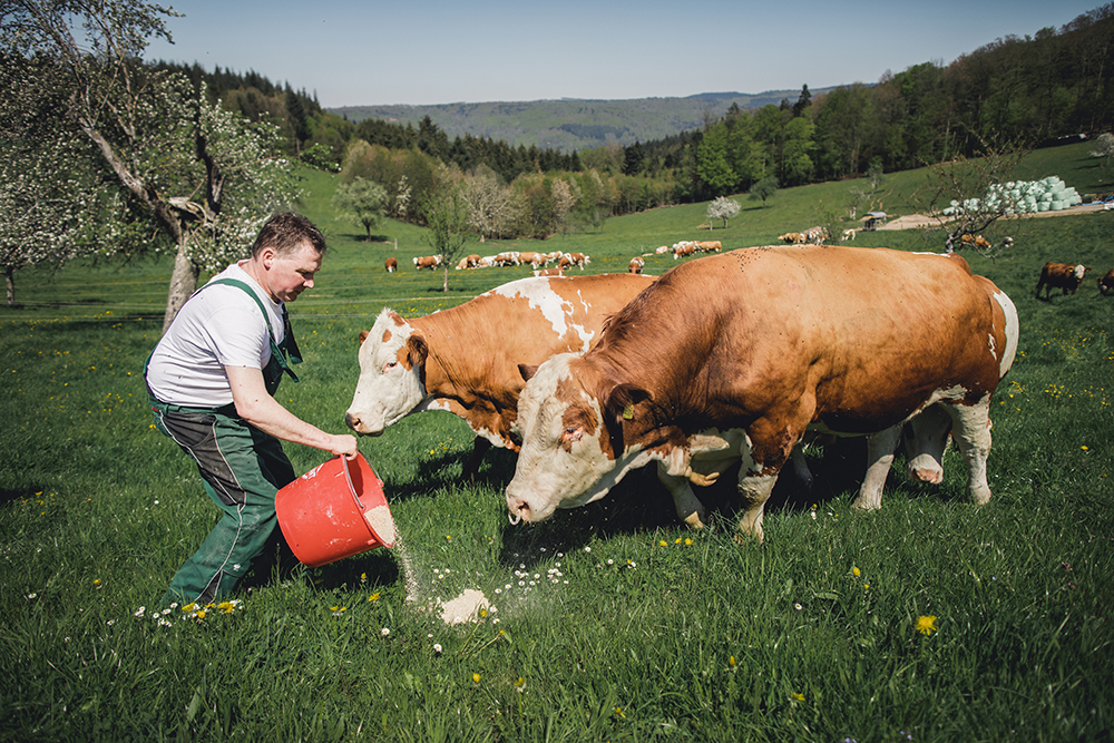 Der Schmiederhof liegt am Rand des Langenhard und wenige Minuten von Lahr entfernt. Seit 1997 führen Bernd und Sabine Schmieder gemeinsam mit ihren Kindern Jonas und Helena den Familienbetrieb. Die Rinder stehen in Mutterkuhhaltung auf weiten Wiesen. So wächst das Fleisch langsam heran und Sie erhalten Produkte mit nachvollziehbarer Herkunft.